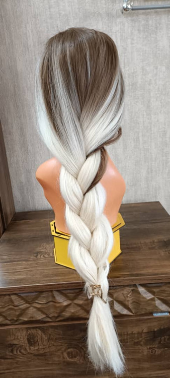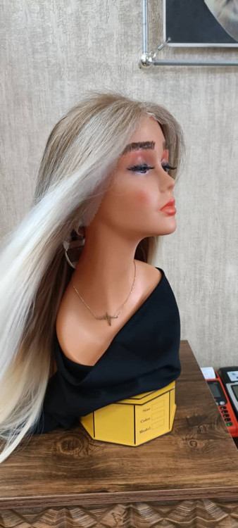 کلاه گیس زنانه بلند آمبره یخی زمینه قهوهای روشن (کد:4037)